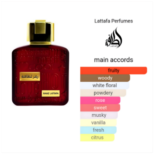 Ramz Lattafa (Gold) by Lattafa Perfumes is a fragrance for women and men. Top notes are Apple, Peach, Black Currant, Pear and Sweet Orange; middle notes are Jasmine Sambac, Rose and Orange Blossom; base notes are Sandalwood, White Musk, Vanilla and Patchouli.